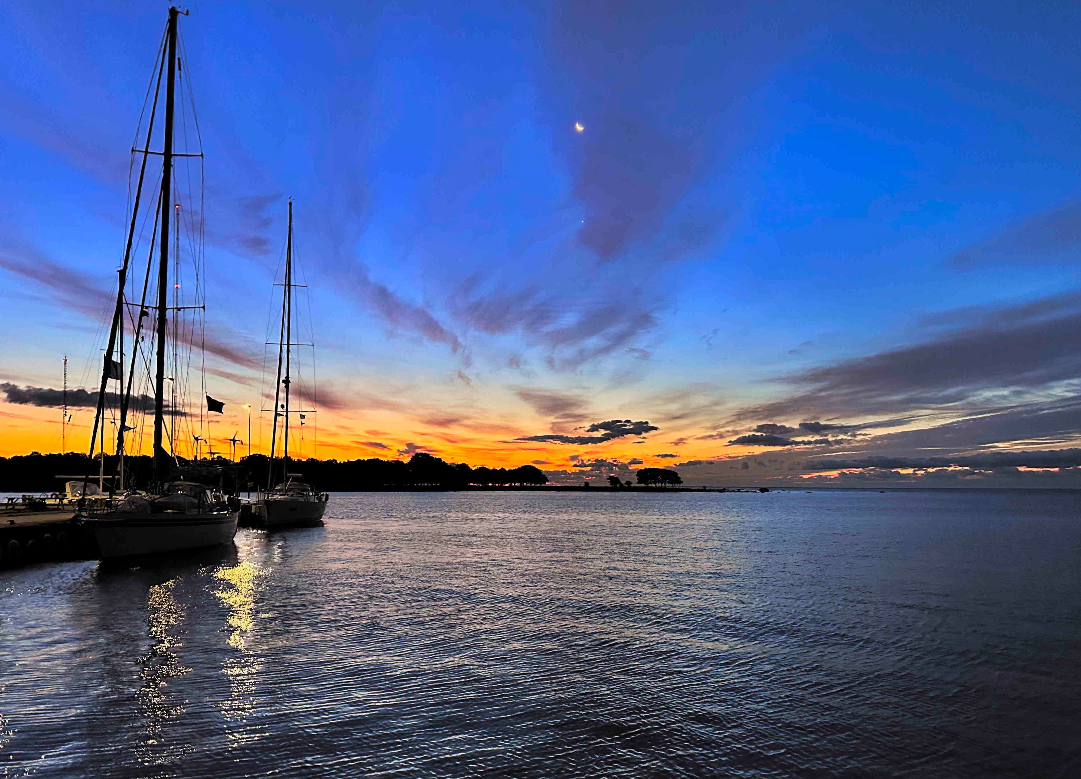 Die Hanöbucht (s.o.) und die Arkonasee trennen SY Blue Layla jetzt noch von der deutschen Küste. Bei der üblichen Westwindlage lauern wir auf das richtige Wind- und Wetterfenster, um die letzten 200 Seemeilen möglichst unter Segel und ohne Bruch über die offene See zu absolvieren. Frühmorgens geht es an Utklippan (s.u.) vorbei zunächst an die südschwedische Küste von Skåne, wo wir auf den passenden Wind für den letzten Schlag warten.